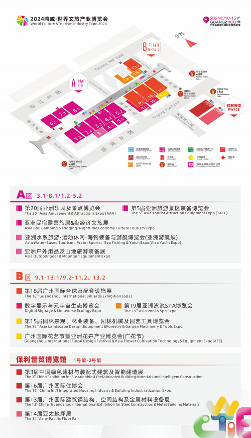 2024鴻威·世界文旅產業博覽會將于5月10-12日在廣州·中國進出口商品交易會展館舉辦:展覽面積達24.7萬平方米,AB區聯動,參展企業近4000家,將吸引20萬觀眾參與。本屆博覽會分設游樂文旅、數字文旅、康養文旅、景觀文旅、休閑文旅、水系文旅六大版塊,展覽范圍包括游戲游藝、主題公園、室內樂園、景區裝備、文旅科技、夜游演藝、民宿/旅居/露營、旅游車船/運動休閑車、泳池SPA、元宇宙、AR/VR、數字顯示、數字體育、園林景觀、花卉園藝、水上運動休閑用品/海釣裝備/游艇、臺球及配套設施等,所涉細分領域涵蓋60%以上的文旅產業。博覽會同期舉辦2024世界文旅大會等30多場會議論壇活動,匯聚100+頂級重磅嘉賓、300+行業主管單位及相關機構代表/企業負責人代表、2000+文旅從業者、2000萬+線上觀眾傾情參與,線下將吸引2萬+專業觀眾參會,致力匯聚全球智慧,共謀產業繁榮。